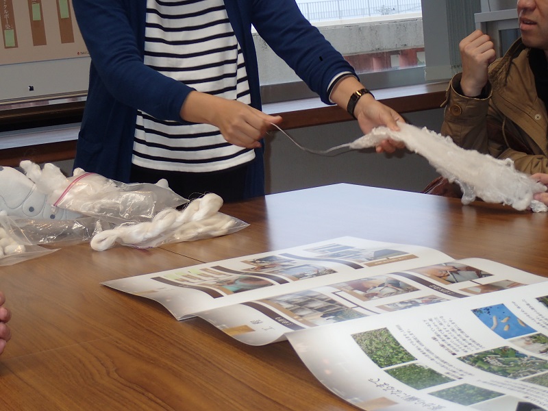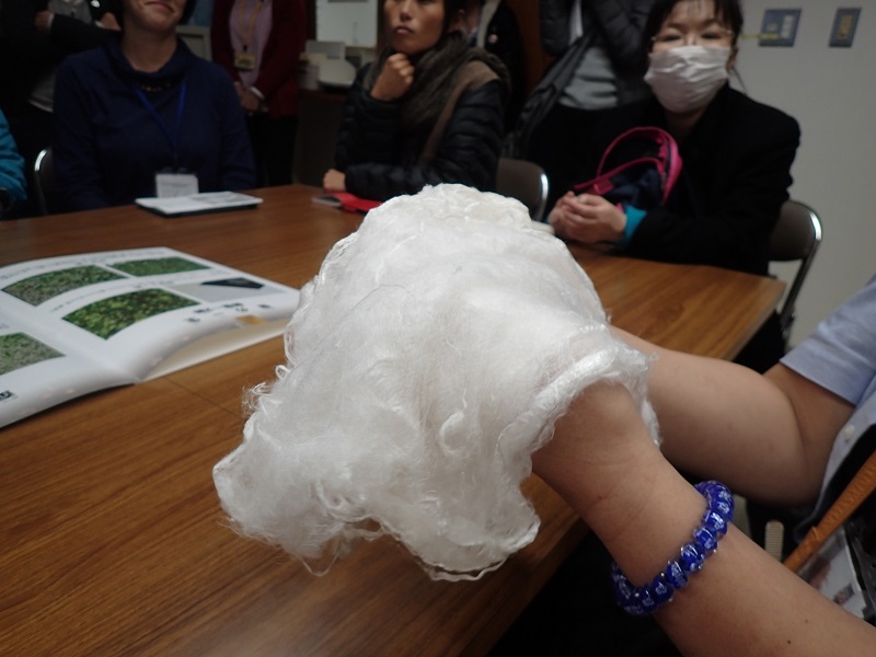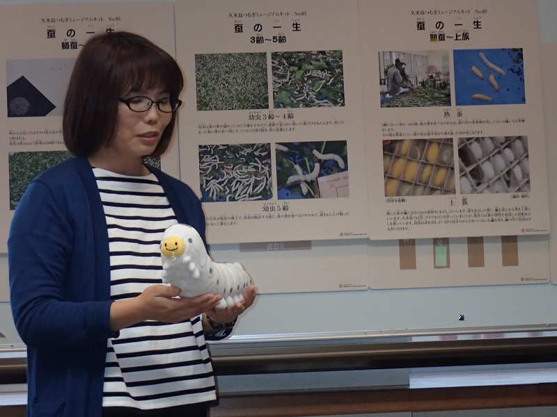 実物の約50倍の大きさで、このゆきちゃんを使っていつも子どもたちに解説をしているのだそう。確かに可愛い!口から糸が出てくるのですよ~!