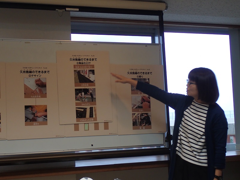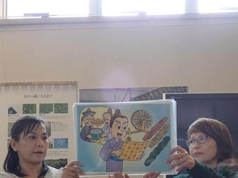 真謝(マジャ)集落に暮らすガイドさんが、久米島紬発祥についての紙芝居を見せて下さいました。