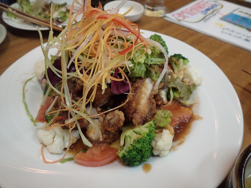 そして、泡盛製造所から出るもろみ粕や月桃、ウコンなどの薬草をエサとしている久米島赤鶏のから揚げ!