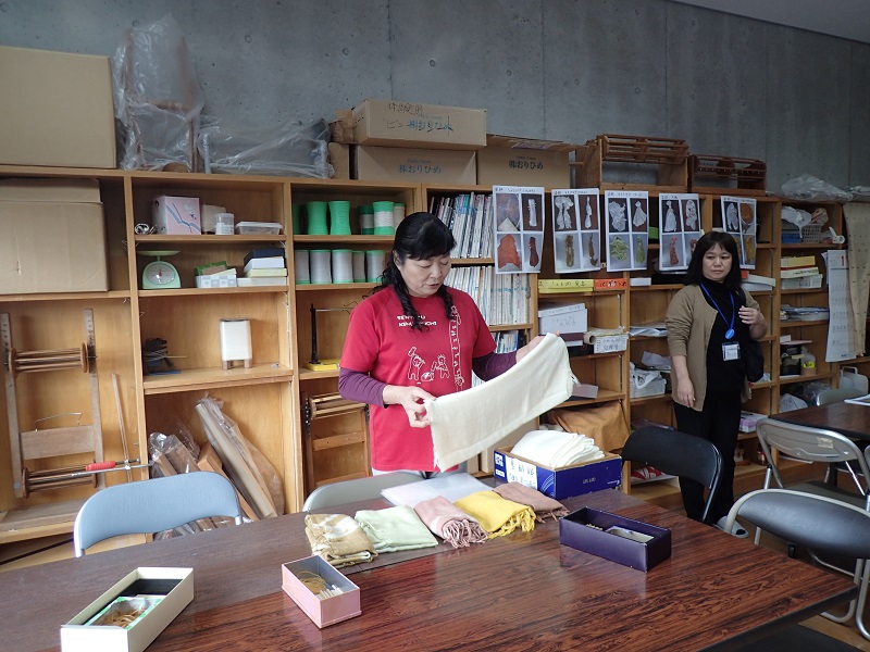 久米島観光協会の麻衣子さんより、ユイマール館の織姫さんたちのご紹介がありまして、、