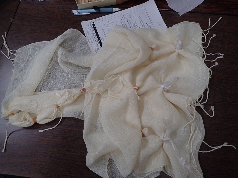 それから泥に漬けて干し、再び植物染料に漬けて干してを20回ほど繰り返してから2回目の泥染めをし、三度植物染料に漬けて干してをさらに20回ほど、そして3回目の泥染めをして、ようやく染めの仕上がりなそうです。