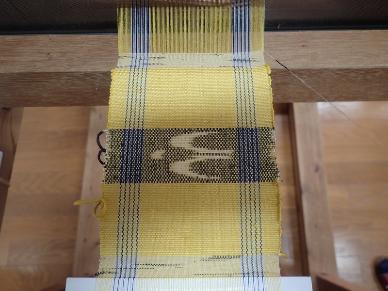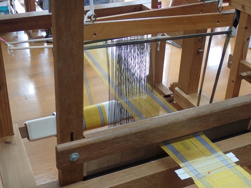 これまで何回か機織りの体験はありましたが、何回やっても緊張しますよね、、とにかく手と足がちぐはぐになってしまうので、落ち着いてやらないと!