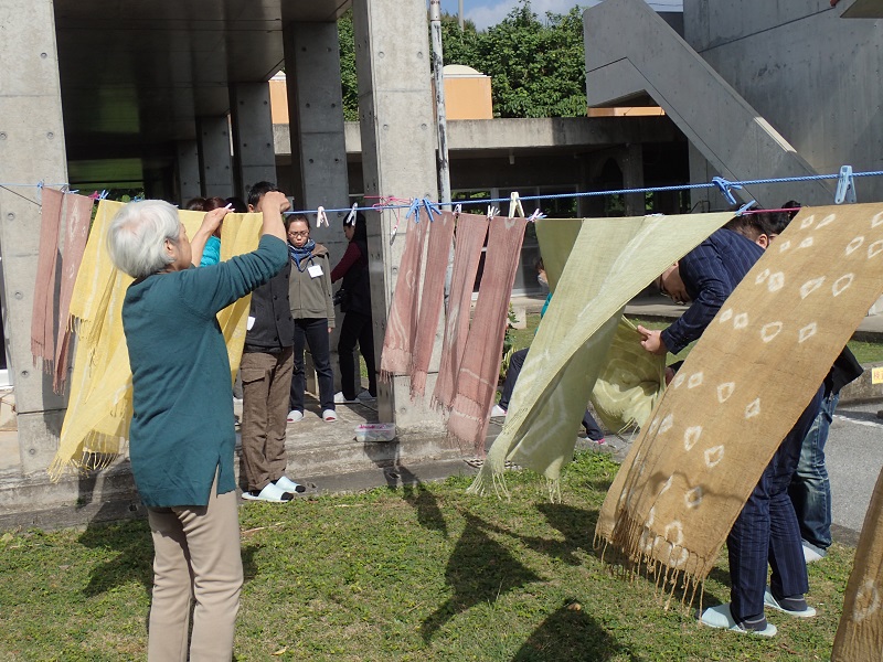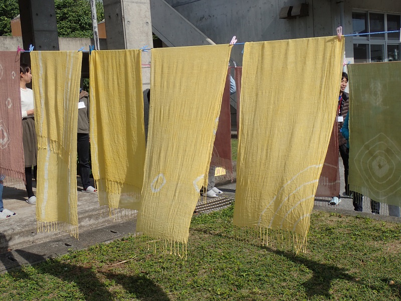皆さんが染めたショールが風になびいて、とても美しかったです!!
