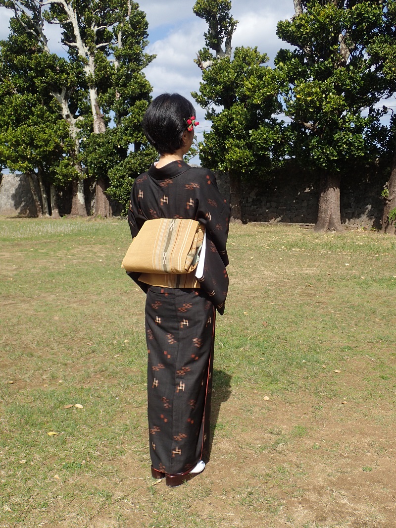 久米島紬の着物を着るということは、久米島の自然と織姫さんたちの思いに身が包まれるということなのですね、、