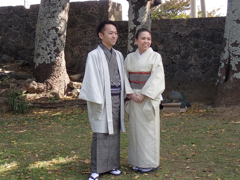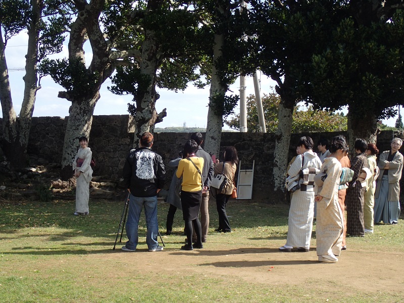 それから部屋を移動しまして、織姫さんたちや石垣島からお越しの和装コーディネーターの山本先生に着付けをして頂きまして、皆さんと一緒に真謝集落をお散歩しました!