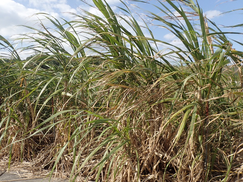 集落の散策の途中には、サトウキビ畑や、
