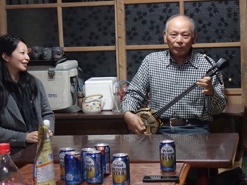 サンシンの演奏があり、、(サンシン名手の惣慶さんは、実は有名なもやし作りの達人!久米島で30年以上無農薬で美味しいもやしを作り続けているのだそうです。)