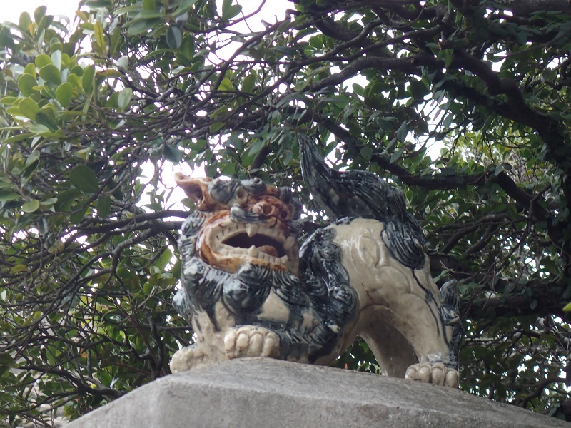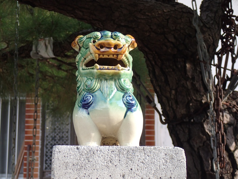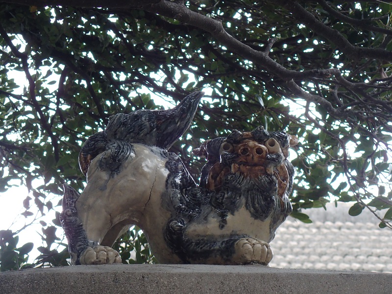 シーサーは、口を開けているのがオスで、口を閉じているのがメスなのだそう。オスが口に幸せを引き寄せて入れ、メスはそれが逃げないようにしっかりと口を閉じているのですって!