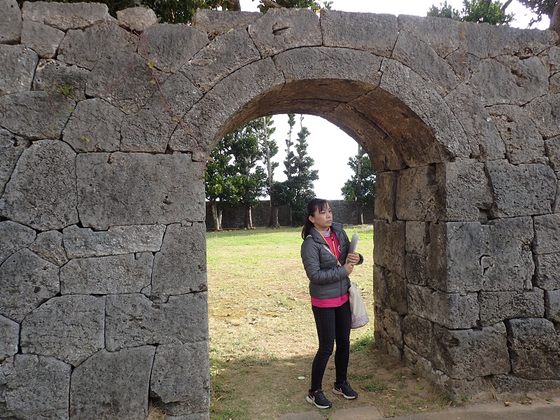「旧仲里間切蔵元跡」は、昔の役所の跡地です。高い石積みの技術が見所です。