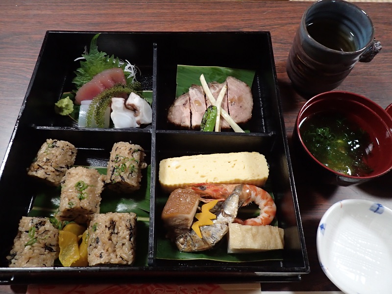 ツアー最後のお食事は、仲原家にて、「ゆくい処笑島(わしま)」さんの、久米島の食材を使用した松花堂弁当でした。