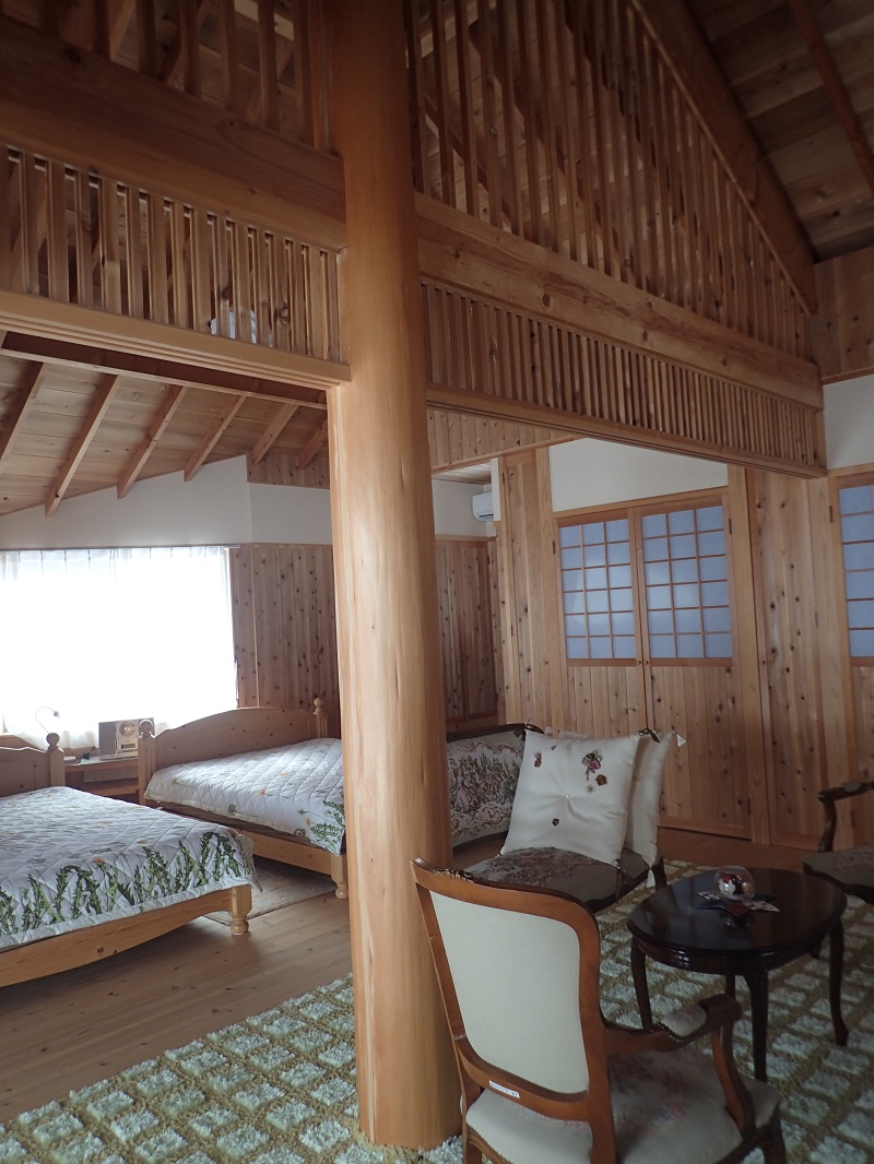 高床式のコテージは木のぬくもりが優しくて、光が溢れる空間でした。