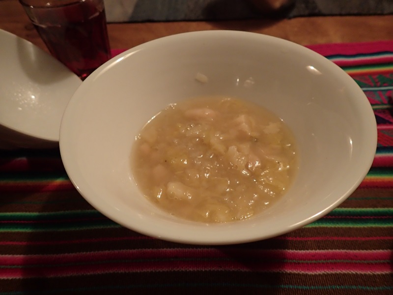 スペイン風白いんげん豆のスープ。昆布出汁だけでとても優しい味です!