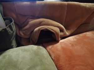 写真は、こたつの中に出入りする際に出来るチャイ穴です!
