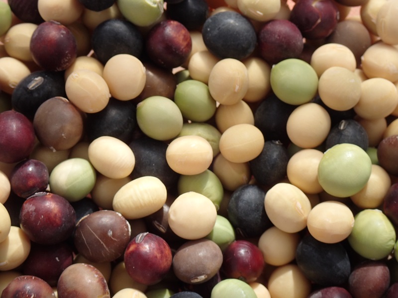 昨年収穫しました大豆5品種をいろいろと取り混ぜまして、、