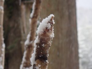 動き始めていたタラの芽にも雪が、、