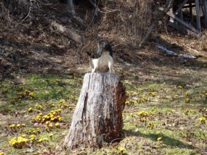 木の切り株にヒョイッと乗って、、しばしお尻を振り、、マーキング!?
