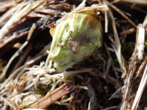 気温が低いせいなのか、すでに誰かに採られてしまった後なのかなかなか見つからなかったのですが、勢いよく流れる用水の縁にようやく1個を発見!
