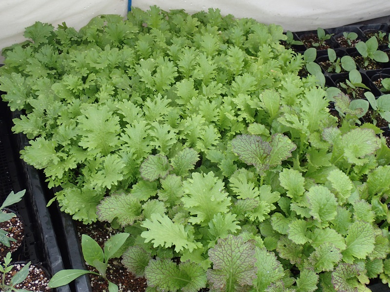 ハウスの中では、もうすぐ移植というお野菜の苗たちがすくすくと育っています。