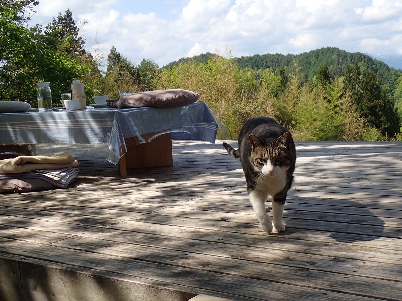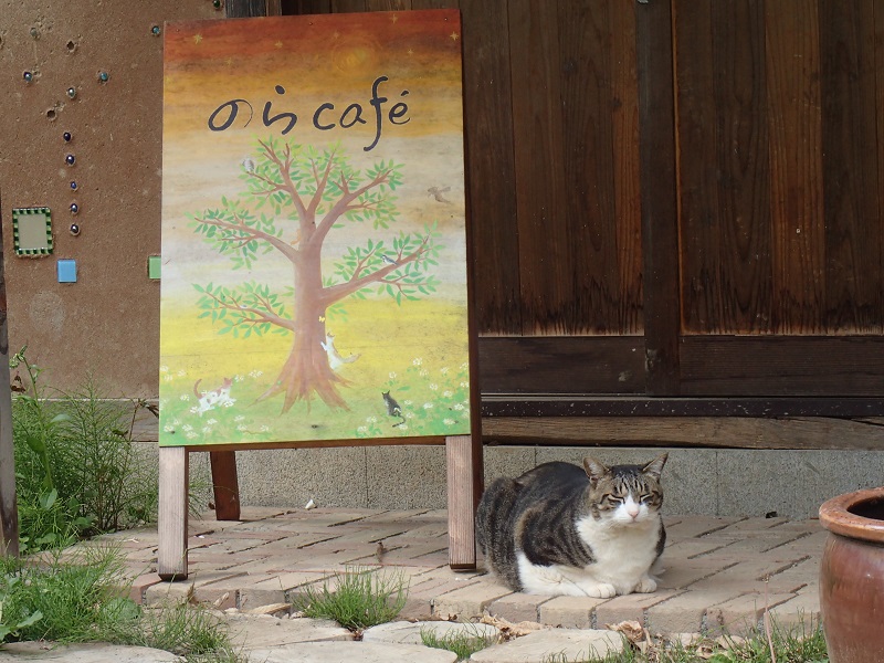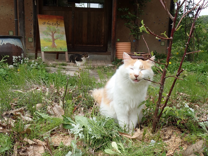 のらcafé前のお庭の草取りをしていましたら、看板猫のチビ太とミコ太がお手伝いに来てくれました。