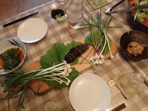 アサツキにノビル。野生のミツバのお浸しにワラビのお浸し。