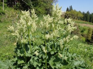 ブルーベリーの横では、ルバーブの花も満開になっていました!