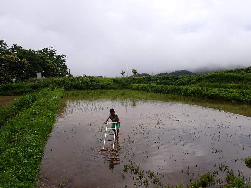 これは、田んぼに入っての草取りの様子です。