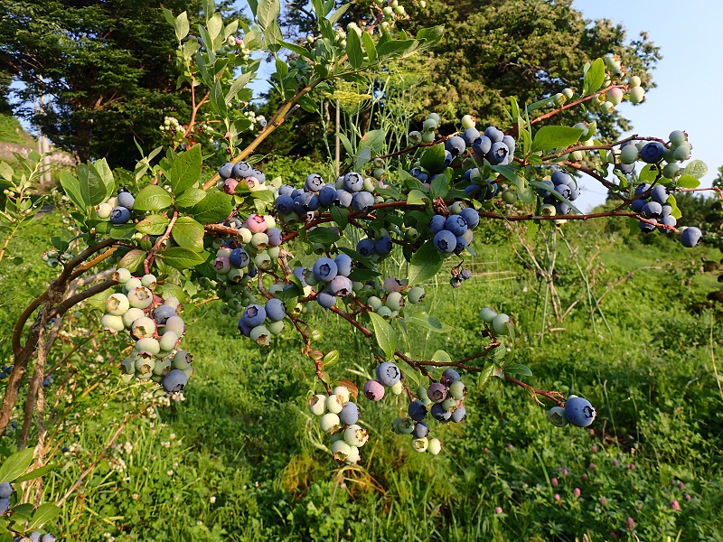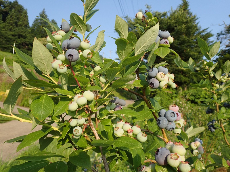 農楽里ファームの小さなブルーベリー畑では、チャンドラーという大粒の品種がだいぶ色付てきました!
