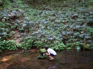 冷たい水の中を歩き、祠にお参りをします。