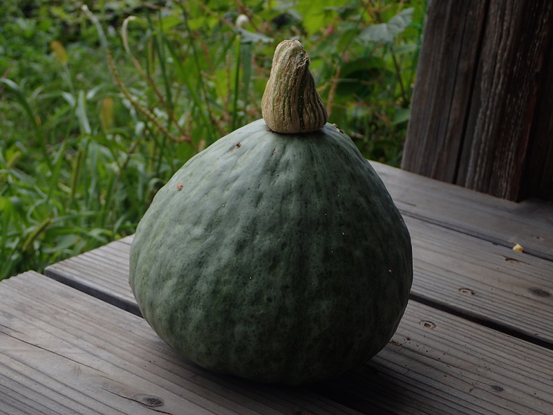こちらは、畑の草の中から見つけ出しました今年お初のカボチャです!