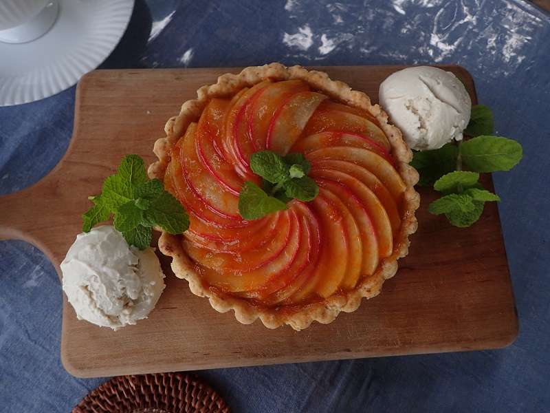 本日の「のらCafé」のお客様にお作りしました早生リンゴのタルトです。