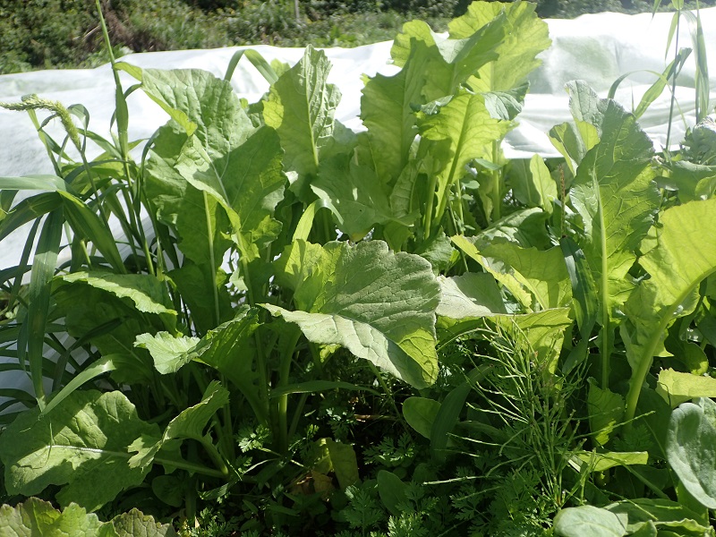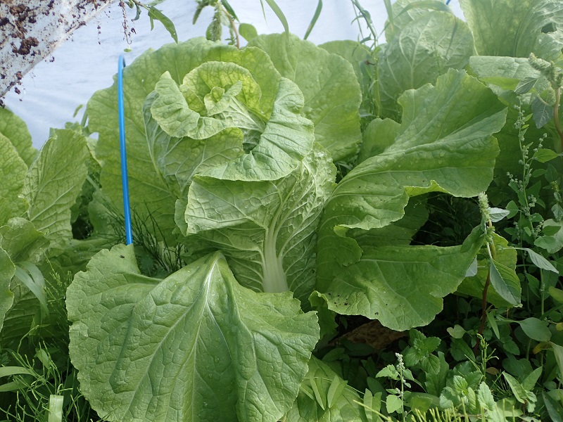 雨が上がってくれたので、秋冬の葉物野菜の様子を見に行きました。