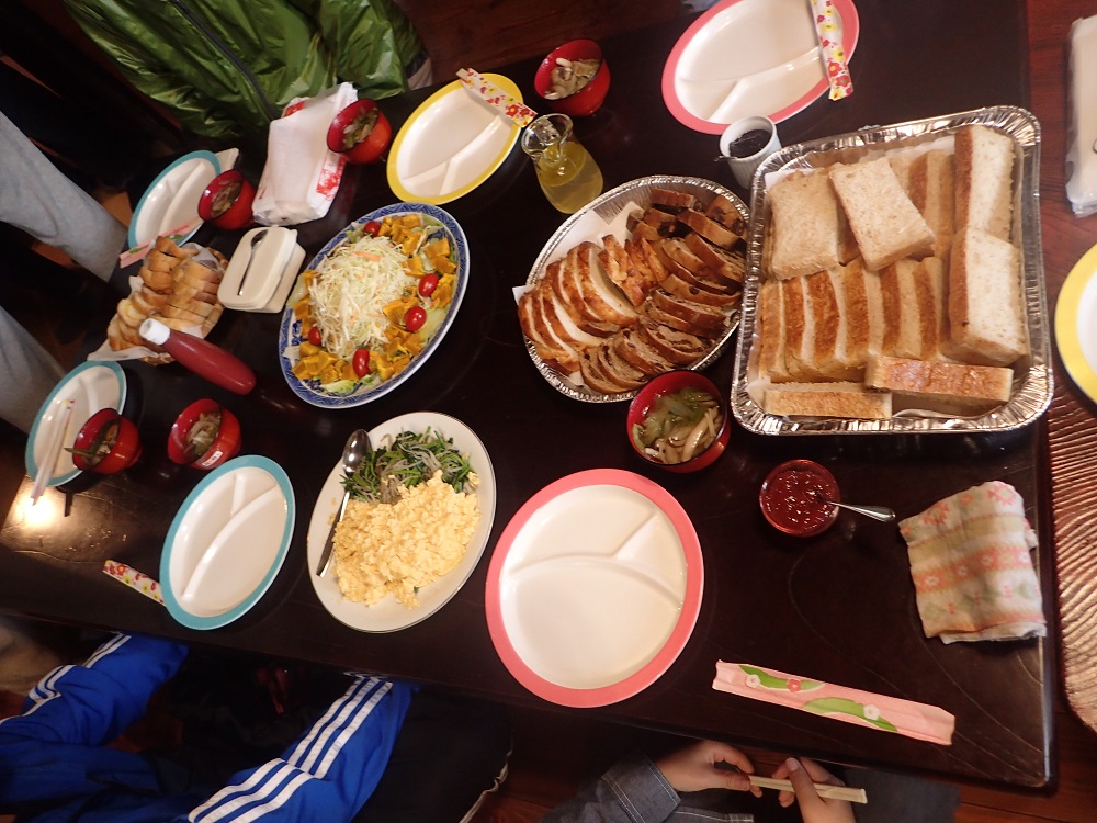 明けての8日は、大岡にある天然酵母のパン屋さん「まめぱん」さんと「モモ」さんからの差し入れの美味しいパンと、「シバキンファーム」さんから頂きましたホウレンソウのソテーなどの美味しい朝ごはんで始まりました!