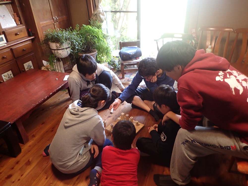 今回も信大教育学部の現役生&OBで先生になっている皆さんが駆けつけてくれて、子どもたちとの交流を楽しみました!子どもたちも、普段触れることのできないお兄さんお姉さんとお話をしたりおんぶをして甘えたり、、繰り返し来ている子たちからは「アカツキはいつ来るの?」「綾ちゃんはいないの?」と聞かれたりもしました。お目当てのお兄さんたちに再会することを心待ちにしていたのですね、、