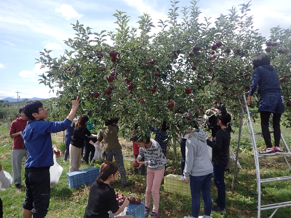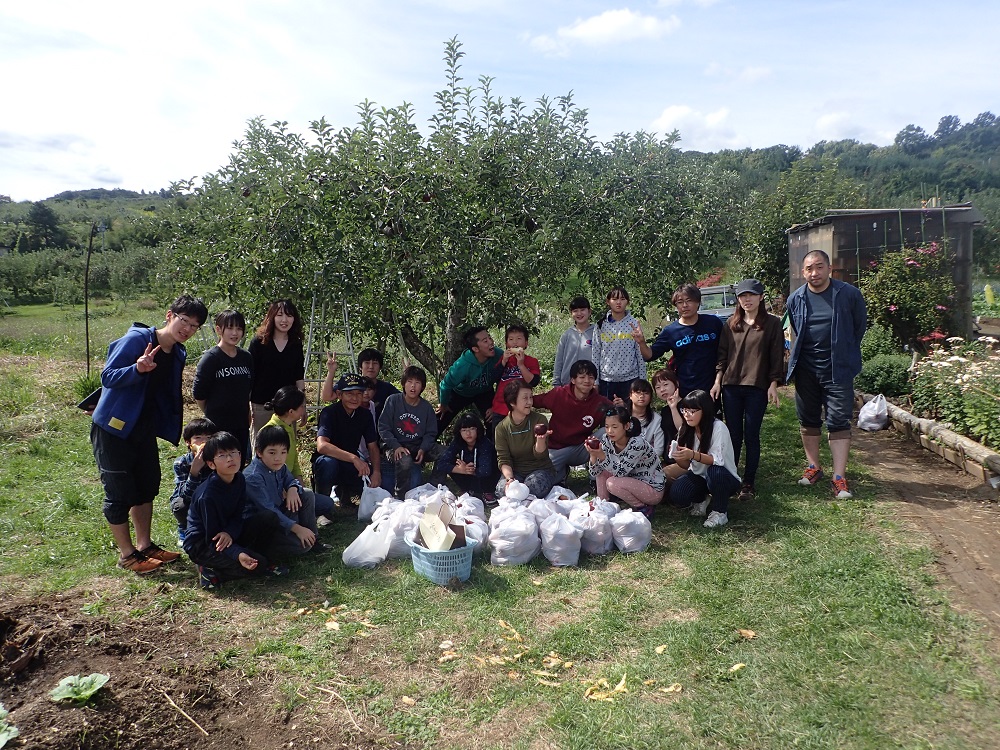 子どもたち、リンゴ狩りも生まれて初めての体験でした!