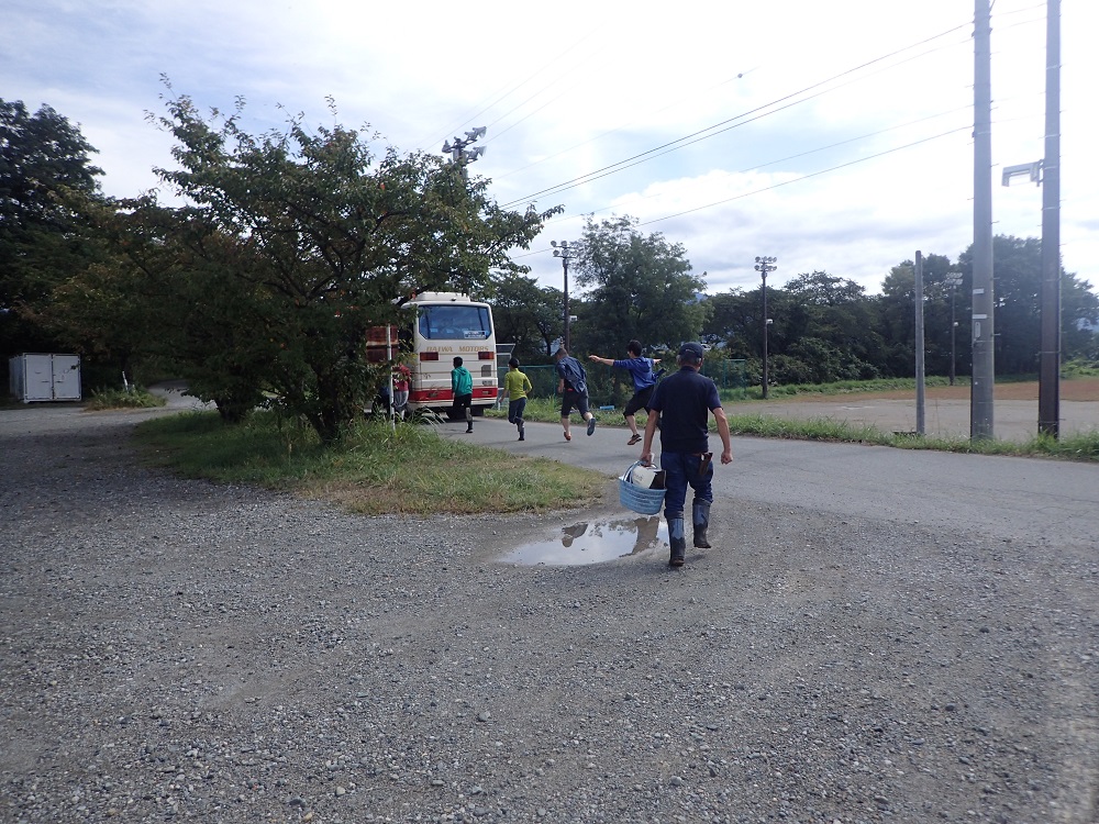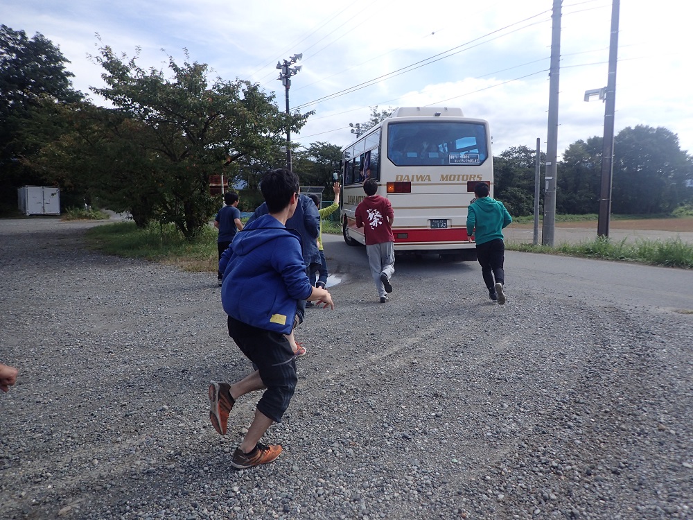 いつもは慶師集落のバス停留所までの「慶師ダッシュ」なのですが、今回は篠ノ井での「リンゴ園ダッシュ!」(笑)
