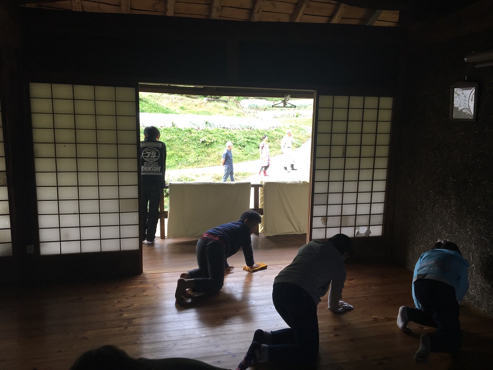 朝ごはんのあとは、みんなで大掃除!掃除機をかけて、床も丁寧に拭いていきます!