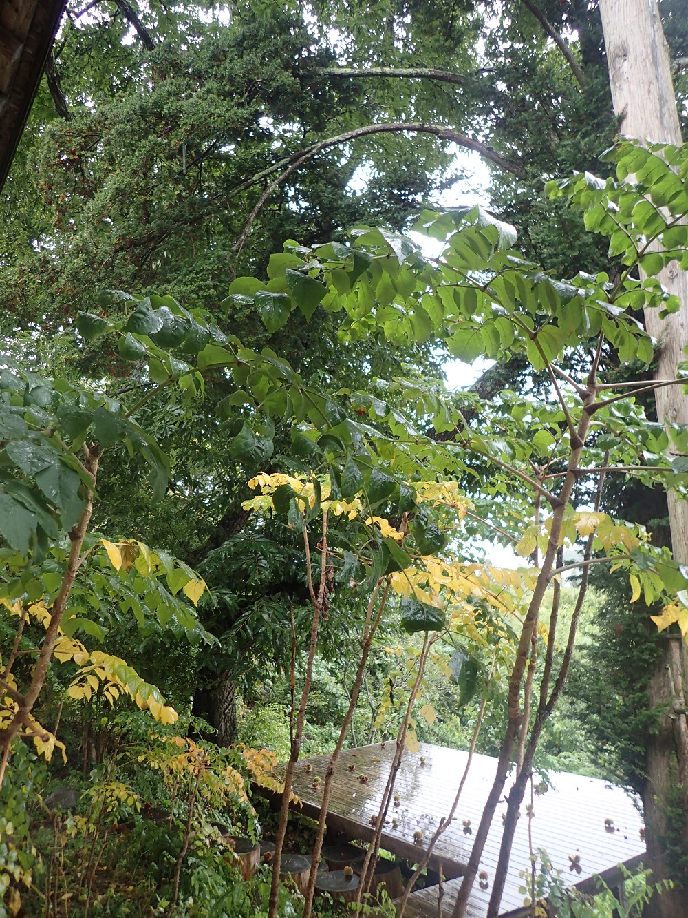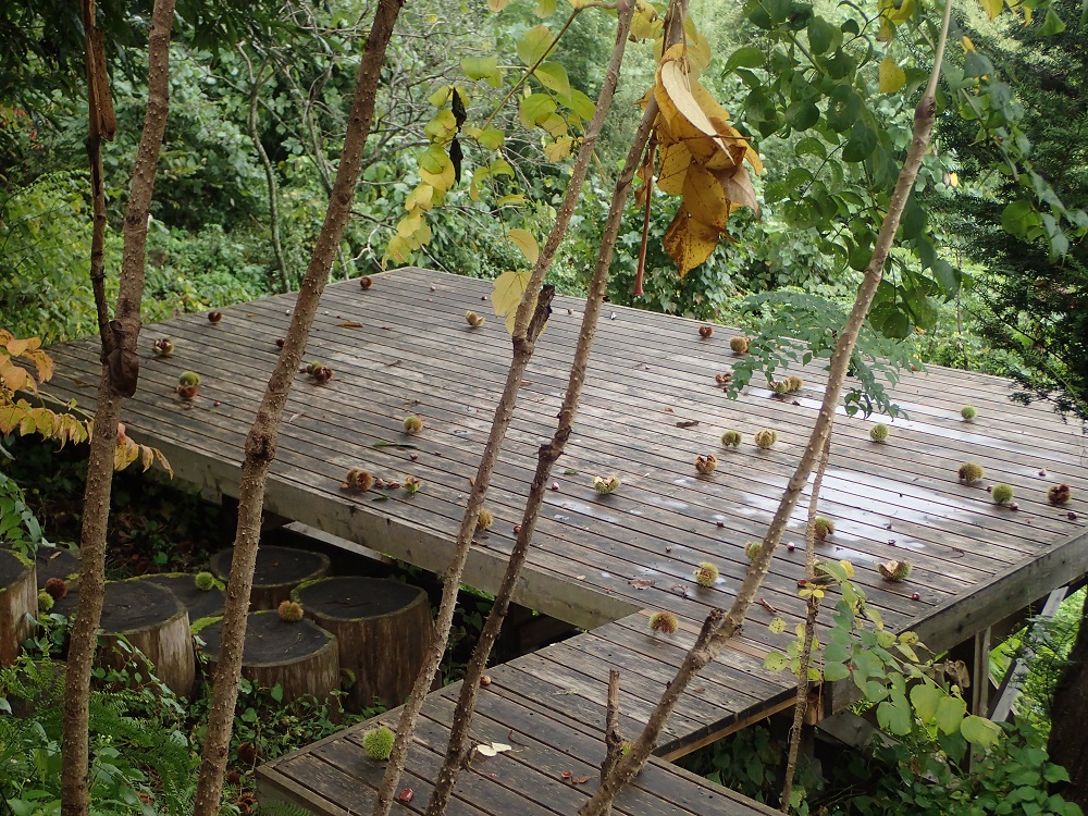 雨が上がったら、ウッドデッキの栗のイガを片付けないといけませんね、、