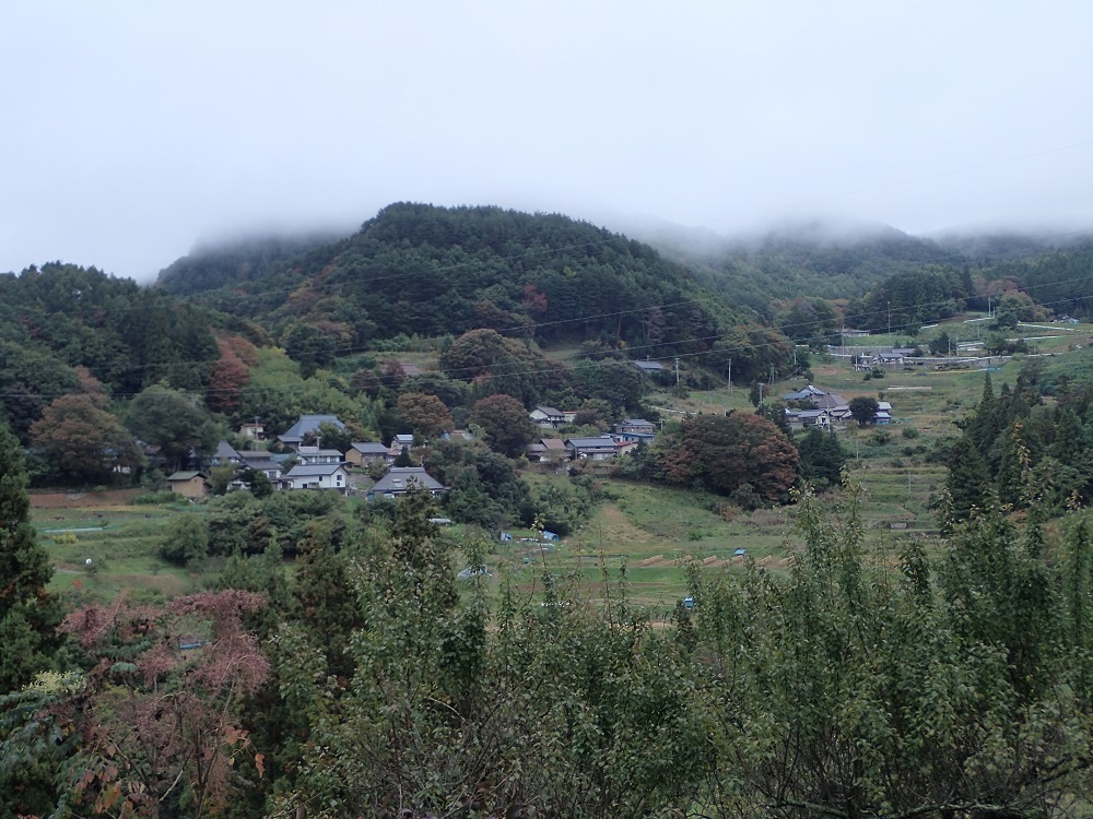 雨の中、少しずつですが紅葉が進み山が色付いてきました。