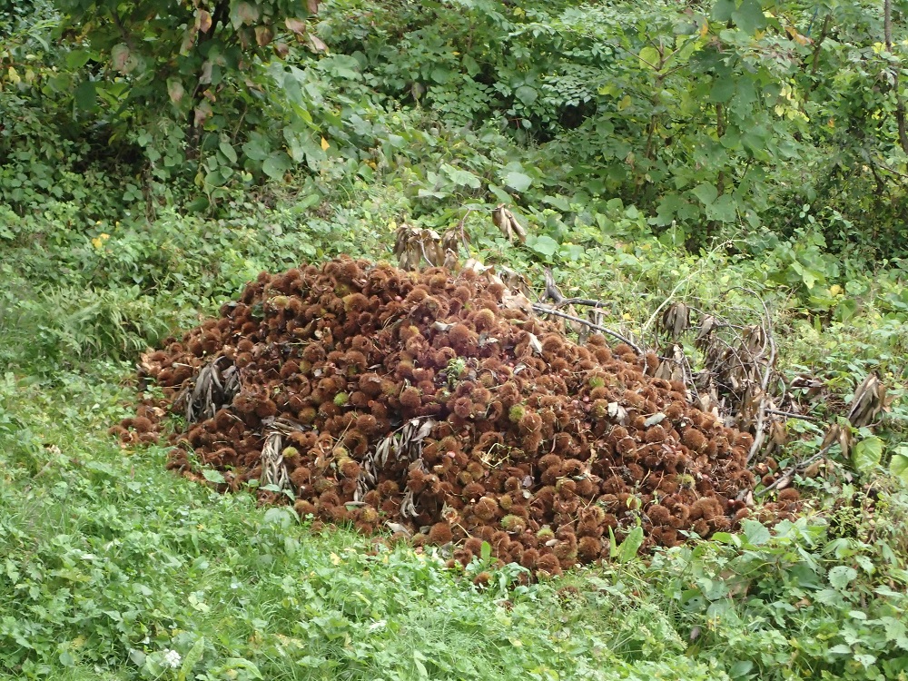 こちら、貝塚ならぬ栗のイガ塚であります。。