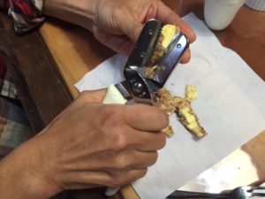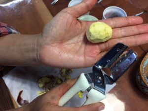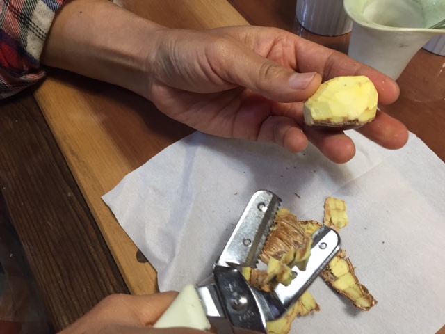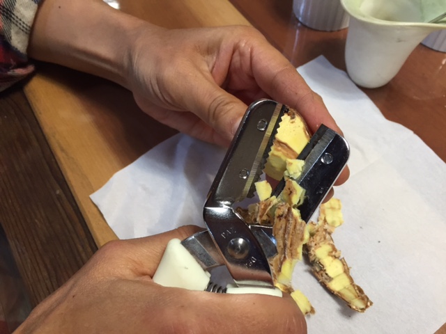 こちらの写真は、栗剥き器を使って栗の皮を剥いている様子です。