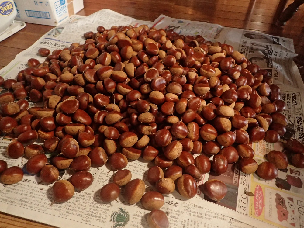 拾いました栗は、冷蔵庫保存で甘みが増すというのでストックもしているのですが、もう庫内もいっぱいいっぱいになりました。