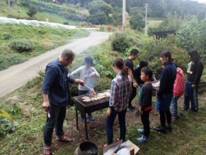 料理長さんに教えてもらいながら、子どもたちも焼き方に入ってワイワイとにぎやかで楽しいバーベキューとなりました。