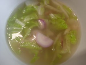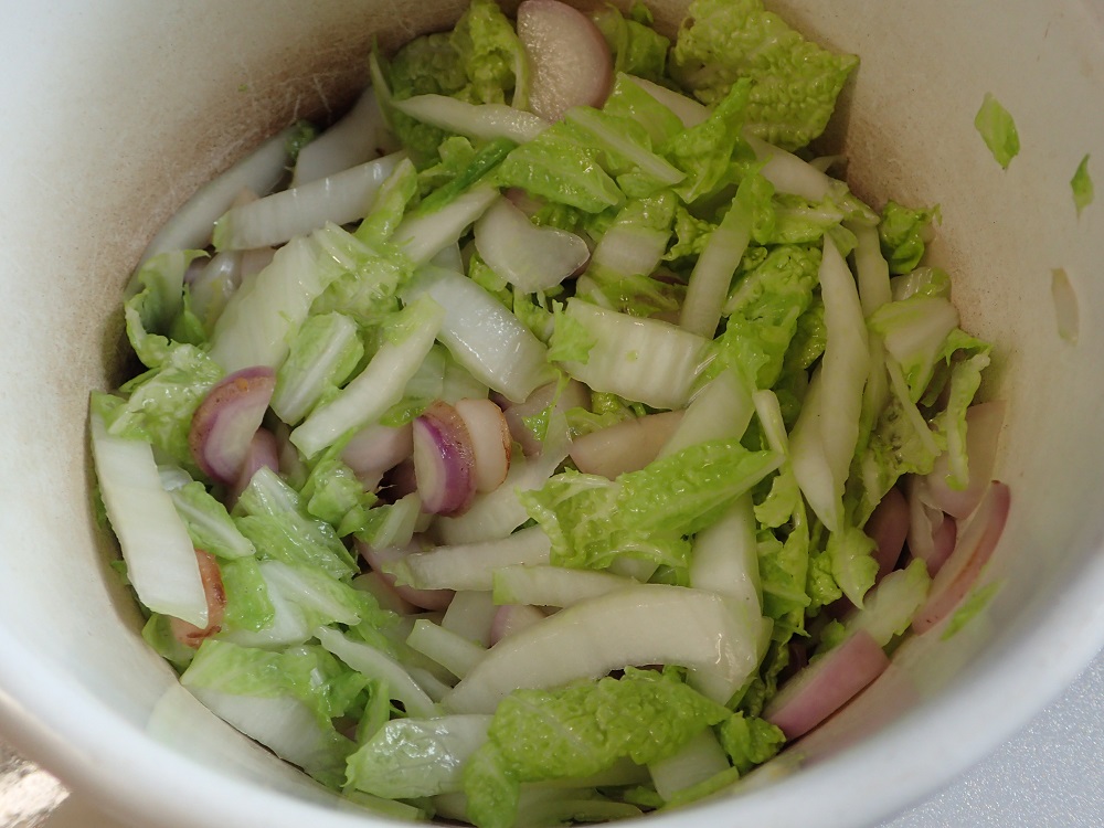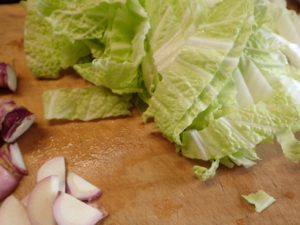 2.白菜は、1~2センチくらいのざく切りにする。