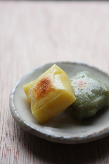 例えば、ヨモギときび餅の2色を並べますとこんな感じです!