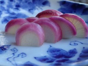 こちらは、紅白かまぼこではなくて、野沢菜カブの糠漬けです。