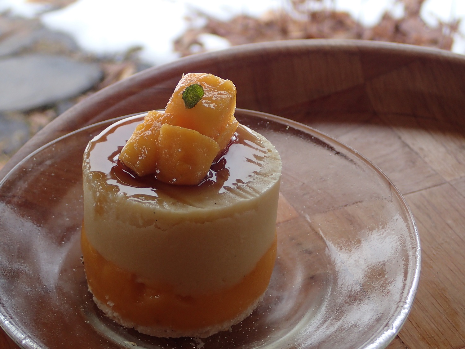 こちらは、マンゴーシャーベットの上にバニラ風味の豆乳のムースを乗せてあるのですが、解凍の加減が微妙に難しかったので、レシピ再検討です。。