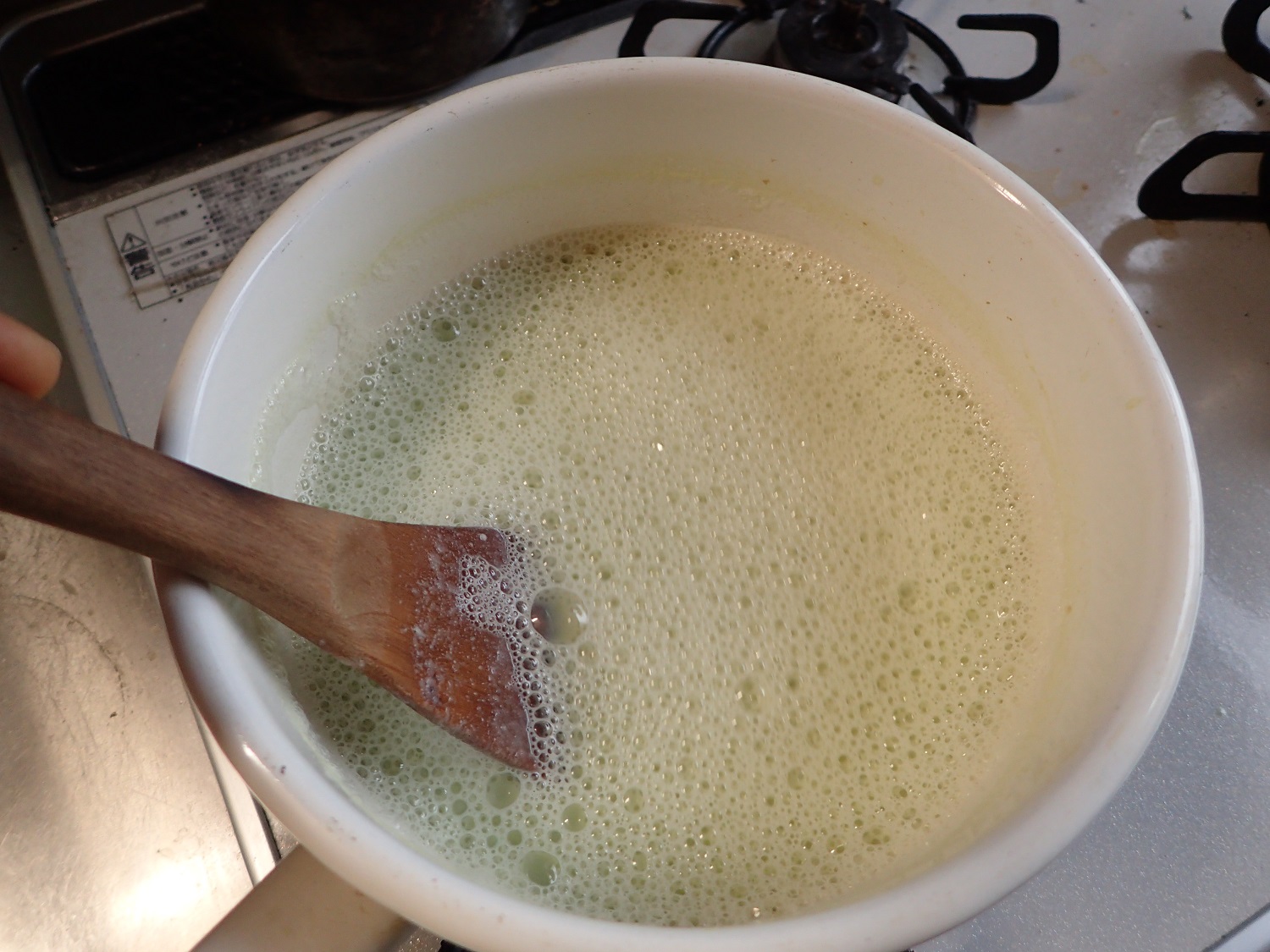 グルグルと混ぜているうちに、空気が含まれて、ぶわーっと吹き上がってくる瞬間があります。