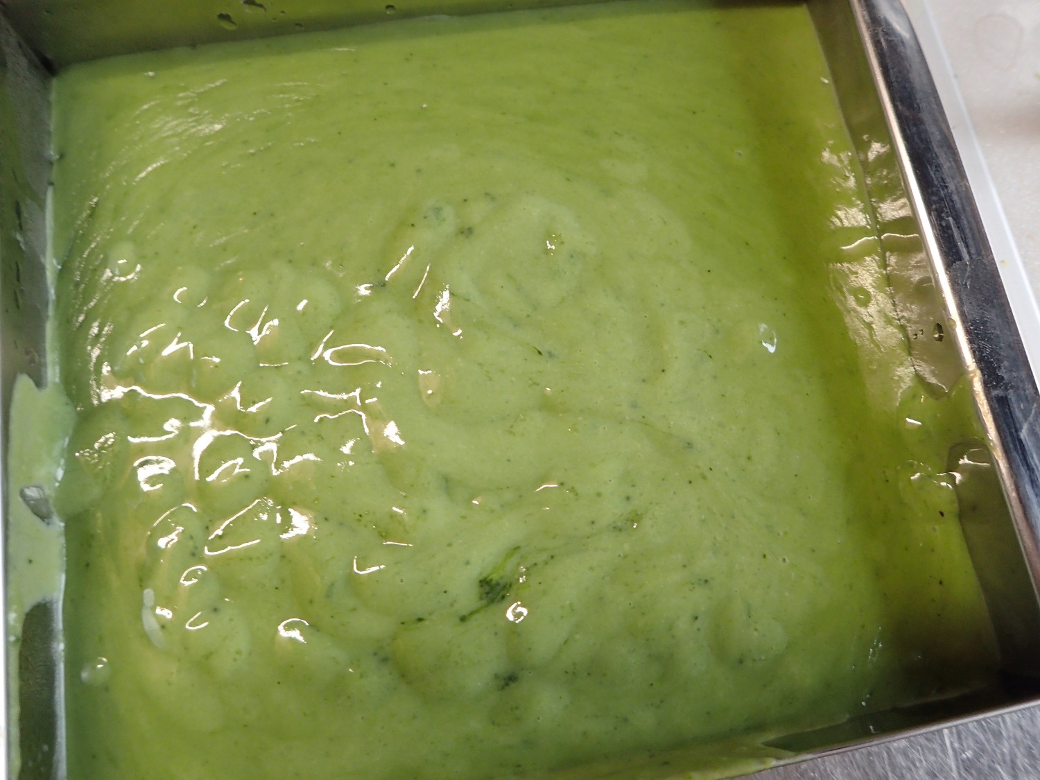 7、こし器を通して、流し缶に注ぎ入れる。