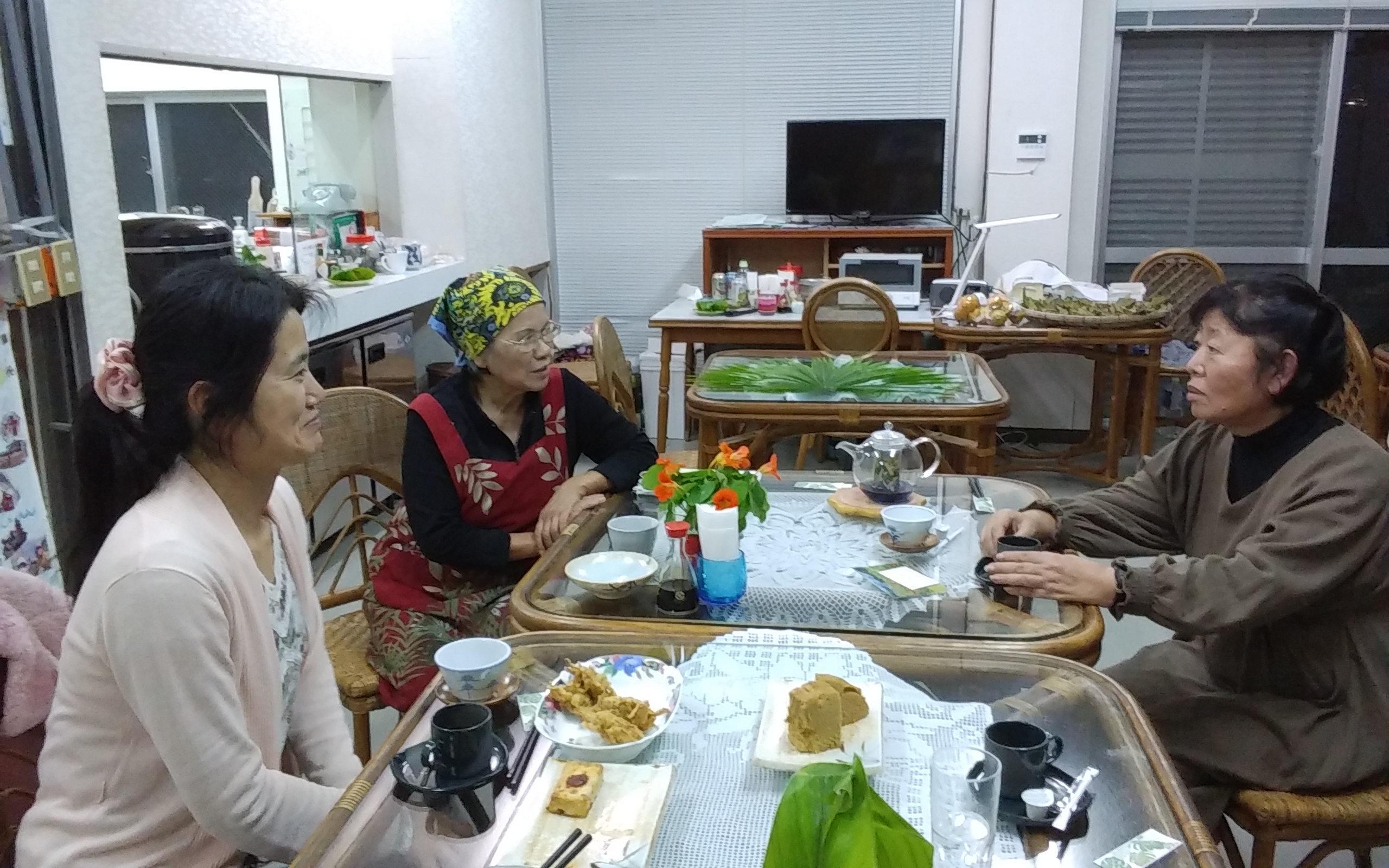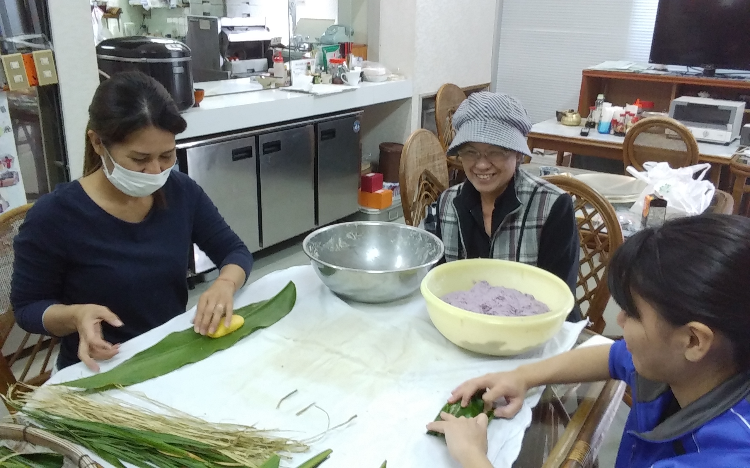 一休みした後は、食堂で、ムーチー作りの体験をさせて頂きました。