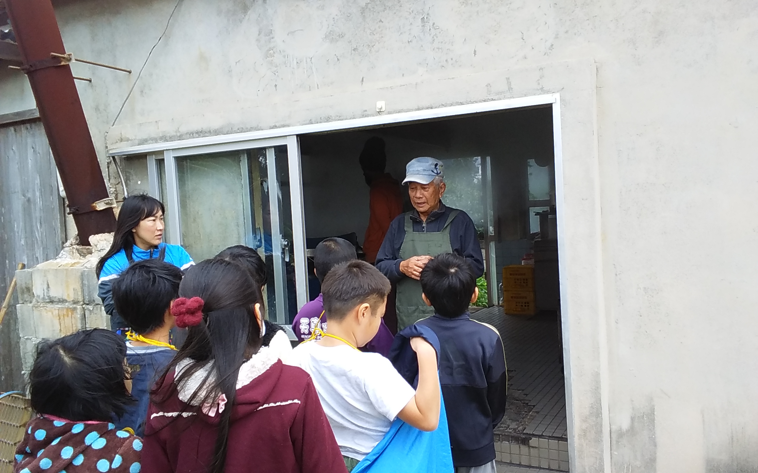 子供たちに黒糖の作り方を説明するおじぃです。